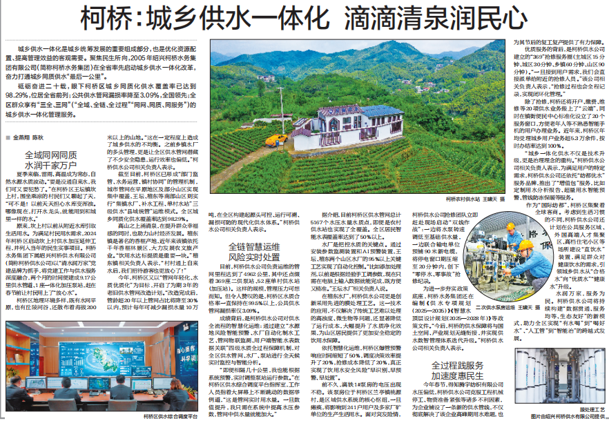 《浙江日報(bào)》專版報(bào)道!柯橋:城鄉(xiāng)供水一體化 滴滴清泉潤民心