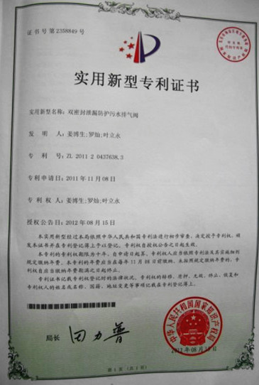 日前,集團(tuán)“雙密封泄漏防護(hù)污水排氣閥”專利項目得到國家知識產(chǎn)權(quán)局正式批復(fù),獲實(shí)用新型專利授權(quán)。