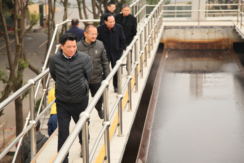 集團(tuán)領(lǐng)導(dǎo)現(xiàn)場(chǎng)參觀集聚區(qū)污水集中預(yù)處理二期系統(tǒng)
