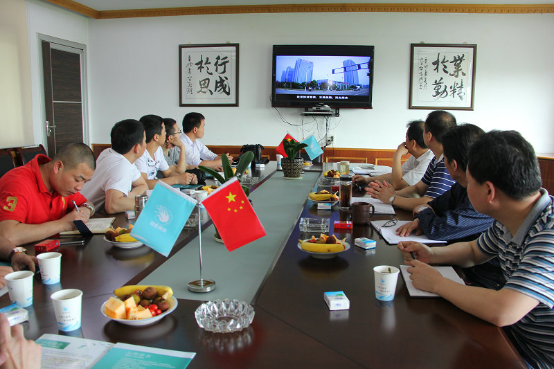 圖為公司領導與客人們一起觀看宣傳片