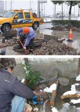 “稽山路和錢陶公路交界處DN100閥門冰裂引起3家企業停水;興越路、裕民路與金柯橋大道交叉口兩只DN300的閥門破損可能引起周圍企業及居民用戶停水4小時;華舍、齊賢靈芝片因管網尚未改造老化嚴重,多處水表、水管凍裂……”,一一個“三來”搶修的信息,個個都敲在搶修人員的心上,為確保用戶能盡快恢復用水,公司搶修人員從元旦開始就沒有休息過。車輛不夠,就動用三輪車、私家車;人手不夠,就加班加點。搶修人員們抱著“不處理完手中任務,絕不休息”的念頭冒著紛飛的大雪,刺骨的寒風,一直奮戰到深夜,“早一秒修好,就早一秒通水”,供水搶修人員以實際行動踐行服務承諾,保障了廣大用戶的安全用水。