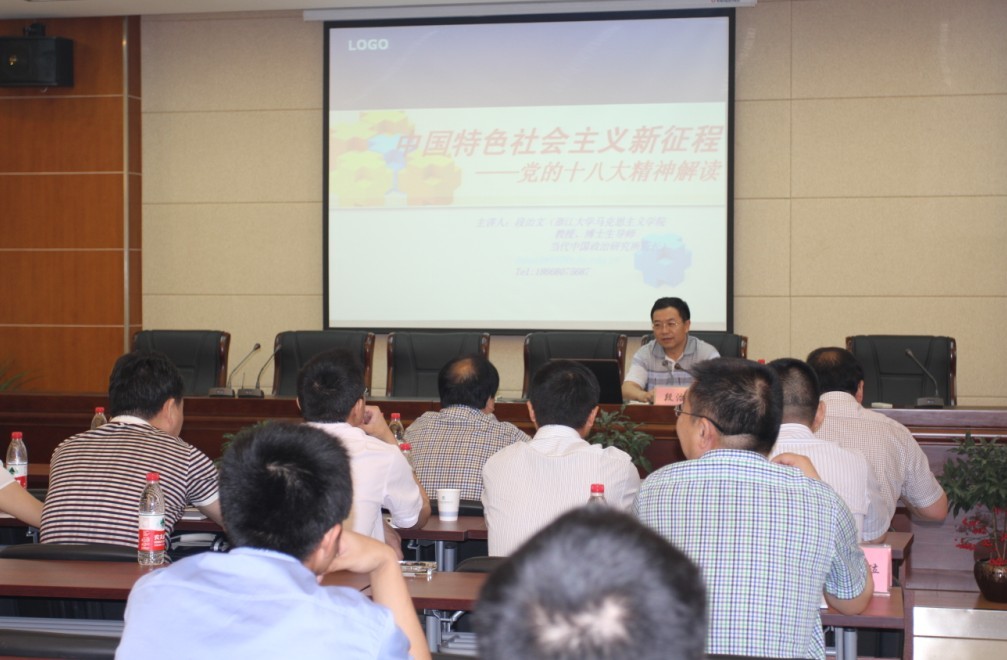 培訓(xùn)中,段教授從堅(jiān)定中國特色社會主義的信念、堅(jiān)持科學(xué)發(fā)展觀的科學(xué)指導(dǎo)、堅(jiān)持科學(xué)的改革開放觀等六個方面對十八大精神進(jìn)行解讀。深邃的政治理論用深入淺出的語言、具體詳實(shí)的事例生動表述,使全體參加講座的人員受到了一次思想的洗禮。這對于進(jìn)一步學(xué)習(xí)貫徹落實(shí)十八大精神發(fā)揮了積極的推動作用。