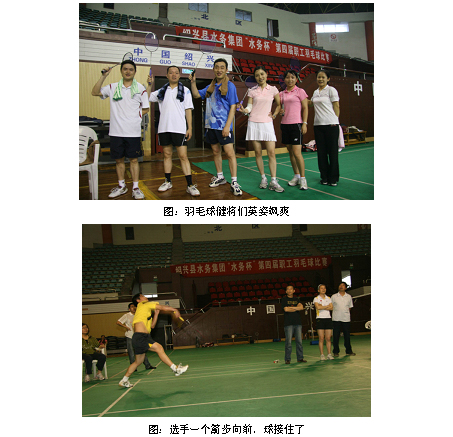 為宣揚(yáng)企業(yè)文化,提倡“快樂(lè)工作、健康工作”,增進(jìn)青年職工的團(tuán)隊(duì)協(xié)作意識(shí),增進(jìn)同事之間的默契度,拉近跨部門(mén)業(yè)務(wù)的操作距離,2010年5月22日,水務(wù)集團(tuán)團(tuán)委在紹興市城東體育館舉辦了第四屆“水務(wù)杯”羽毛球比賽。