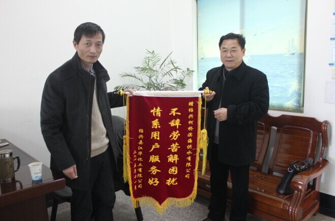 11月30日,紹興江華化工有限公司負(fù)責(zé)人來(lái)到公司,送來(lái) “不辭辛勞解困擾,情系用戶服務(wù)好”的錦旗,對(duì)濱海供水公司長(zhǎng)期以來(lái)為企業(yè)解決難題,營(yíng)造良好的供水環(huán)境,提供高效的服務(wù)支持過(guò)程中表現(xiàn)出來(lái)的管理高水平、人員高素質(zhì)、工作高效率表示深深感謝。
