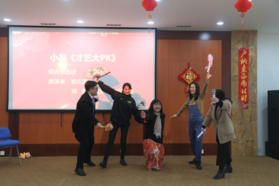 舞臺(tái)上,迎春聯(lián)歡會(huì)節(jié)目形式多樣、亮點(diǎn)紛呈,由各部門(mén)精心選送的小品、歌曲演唱、三句半和樂(lè)器演奏等形式各異的節(jié)目精彩上演。江濱人脫下工裝,盡顯才藝,通過(guò)各桌打分,綜合部選送的小品《才藝PK》獲得最佳節(jié)目獎(jiǎng)。最后公司總經(jīng)理徐冬上臺(tái)致辭,向全體干部員工及家屬致以新春祝福,向奮斗在一線崗位的員工表達(dá)敬意,迎新聯(lián)歡會(huì)圓滿落幕。